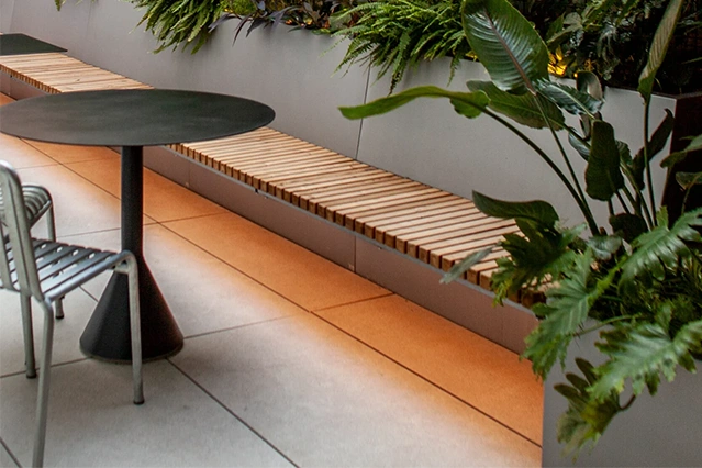 A chapa de Zincor de 1,5mm, com que produzimos os nossos produtos é pintada à pistola, na cor RAL e com o acabamento escolhido pelo cliente (mate, semi-mate, brilhante, texturado, anti riscos, com partículas metalizadas), e que melhor se integra na decoração do espaço. A protecção anticorrosão pode ser reforçada de acordo com as características do local onde os produtos vão ser colocados – locais expostos a elevada salinidade ou elevado índice UV, exigem uma protecção extra para que os produtos não enferrujem, ou a cor não fique “queimada” pelo sol. Para dar resposta a estas e a outras necessidades, o Horto do Campo Grande utiliza produtos certificados de acordo com as especificações ISO 12944.
