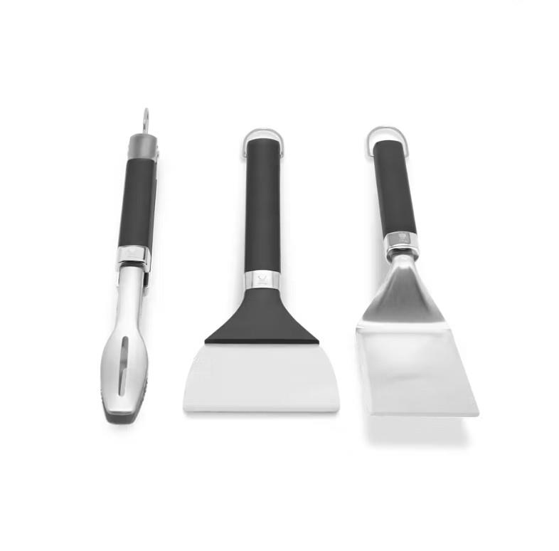 Tudo o que precisa para grelhar em qualquer lugar. O conjunto portátil de utensílios para placa inclui uma espátula compacta, uma pinça e um raspador de tamanho ideal para levar para a sua próxima festa de bagageira ou piquenique. Depois, quando regressar a casa, basta colocar na máquina de lavar loiça para uma limpeza fácil.