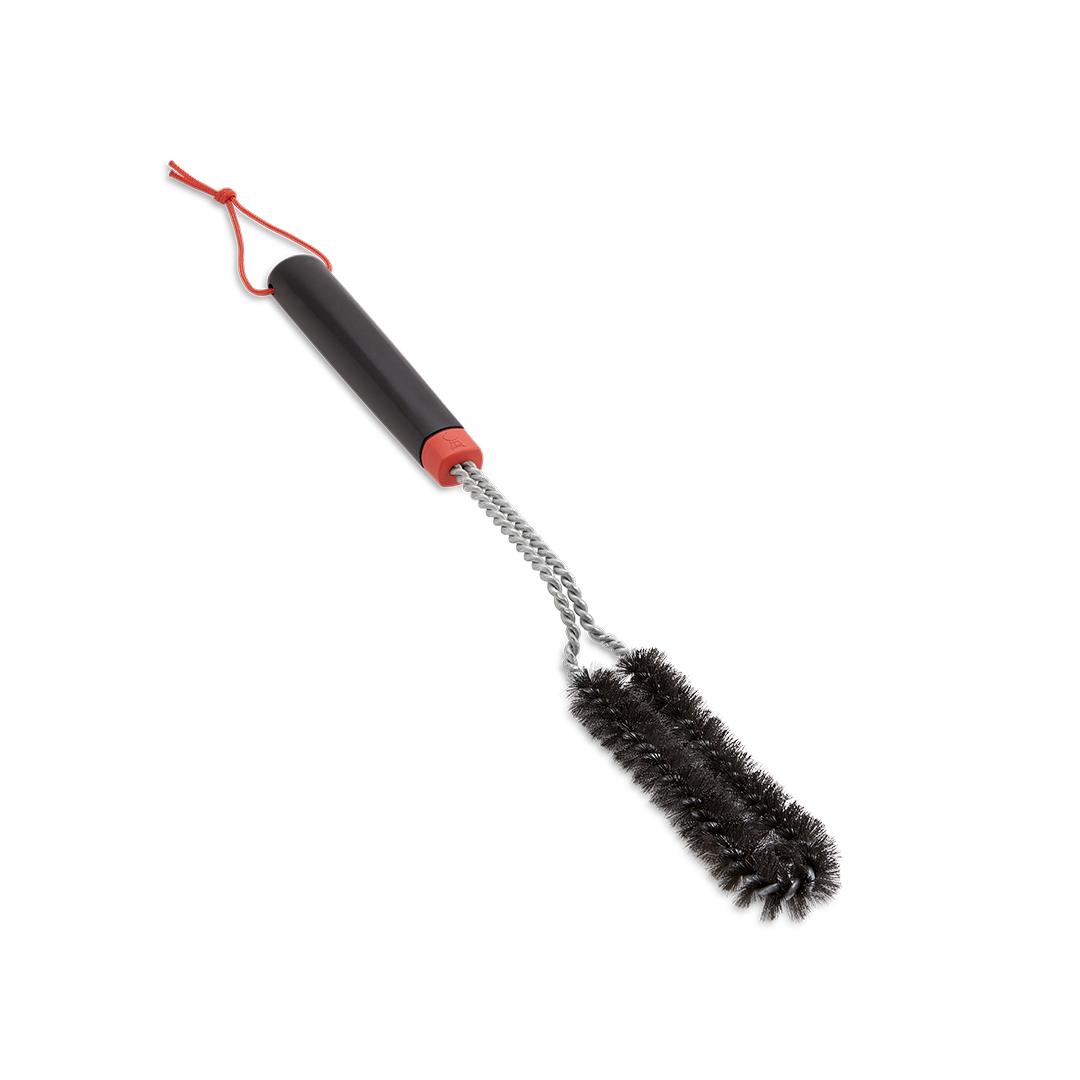 Esta escova faz mais do que simplesmente limpar grelhas de todos os tamanhos. É ideal para eliminar restos de alimentos queimados, gordura e resíduos nos tubos do queimador, nas barras Flavorizer ou noutros espaços estreitos. O design comprido e antiderrapante da pega garante um apoio seguro que lhe permite escovar locais de difícil limpeza no interior do seu grelhador. Utilize esta escova para a limpeza antes de cada utilização, garantindo que o seu grelhador dura mais tempo e todas as refeições são igualmente deliciosas.